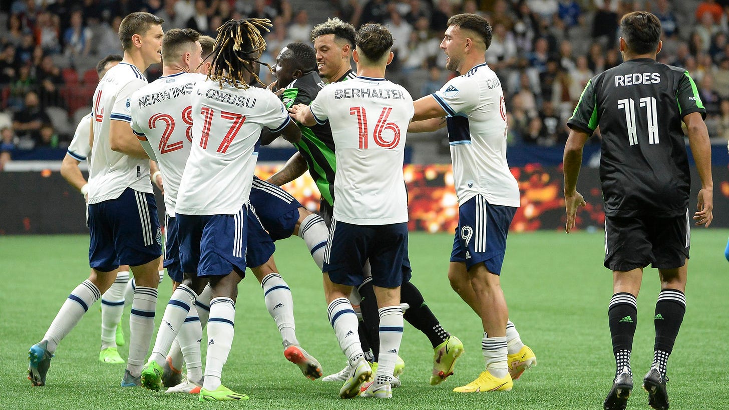 I worked my weekly adult league matches last night (2x D3 Men’s 7v7). The first game was well-played and went smoothly. The second was a one-sided game that got heated at the very end.